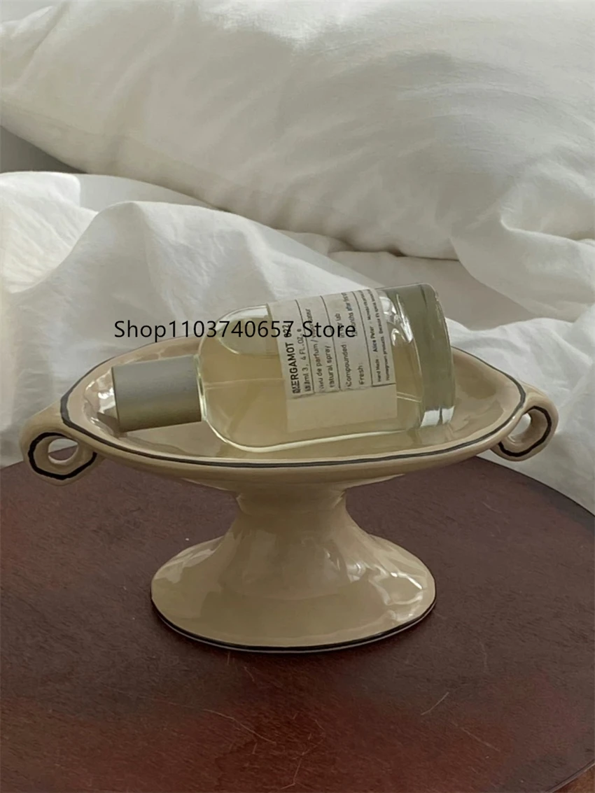 빈티지 심플 세라믹 보관 플레이트, 귀여운 수제 장식품, 홈 액세서리, 크리에이티브 인스 스타일, 바이노럴 하이 풋 트레이