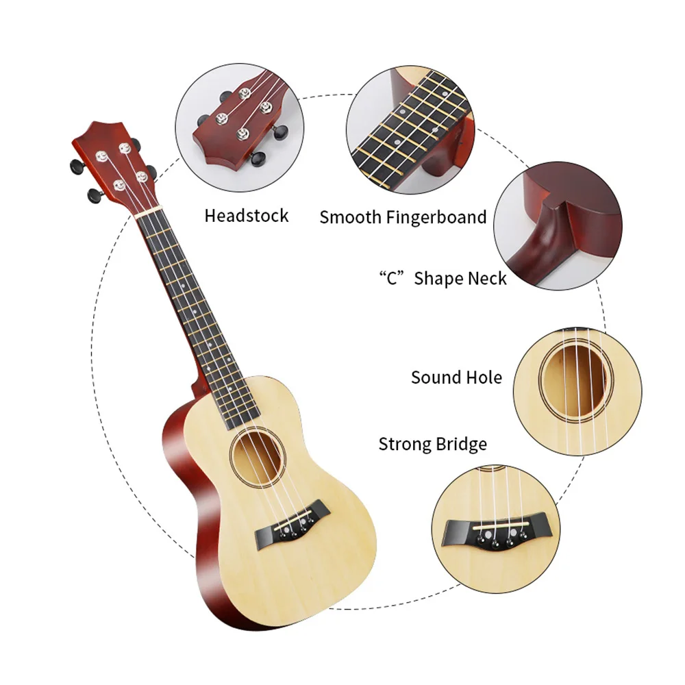23인치 우쿨렐레 어쿠스틱 우쿨렐레 키트(보관 가방, 스트랩, 브릿지 핀, 피치 시프터, 픽업 튜너, 청소용 천 포함)