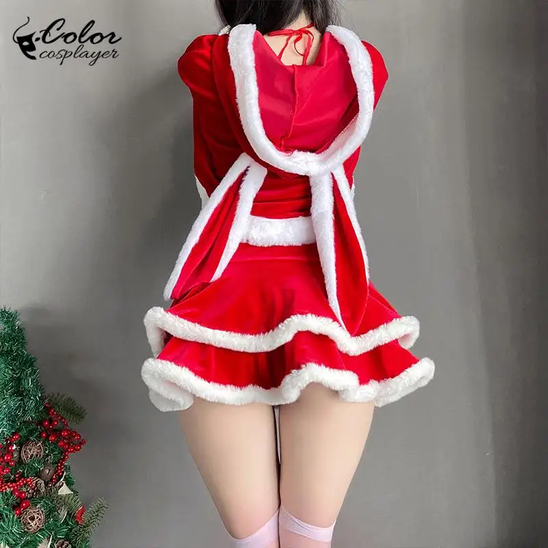 크리스마스 드레스 슈트 여성용 크리스마스 코스프레 의상 빨간 슈트 파티 토끼 귀 머리장식 새해 후드 숄 크리스마스 소녀 세트