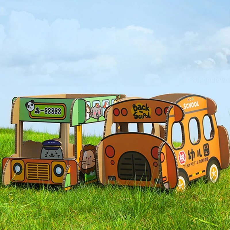 자동차 모양 골판지 고양이 긁개, 편안한 더블 데크 묶음 침대, 동물 버스, 애완 동물 용품