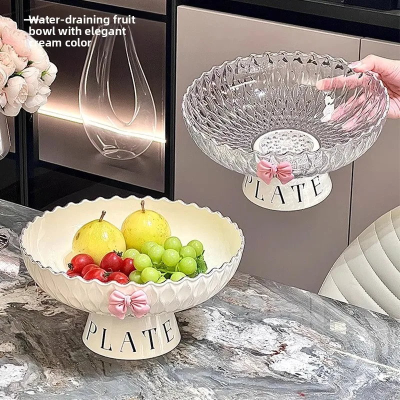 대용량 과일 트레이 물결무늬 높은 받침대 배수 트레이 사탕 간식 트레이 높은 미적 가치 크리미 스타일 플라스틱 과일 접시