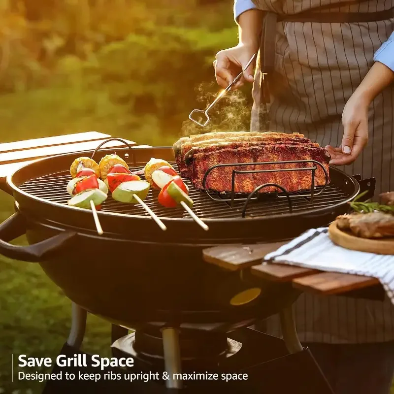 바베큐 스테이크 랙 붙지 않는 코팅 강철 로스팅 바베큐 갈비 고기 양고기 로스팅 그릴 스탠드 야외 피크닉 리브 랙 보유