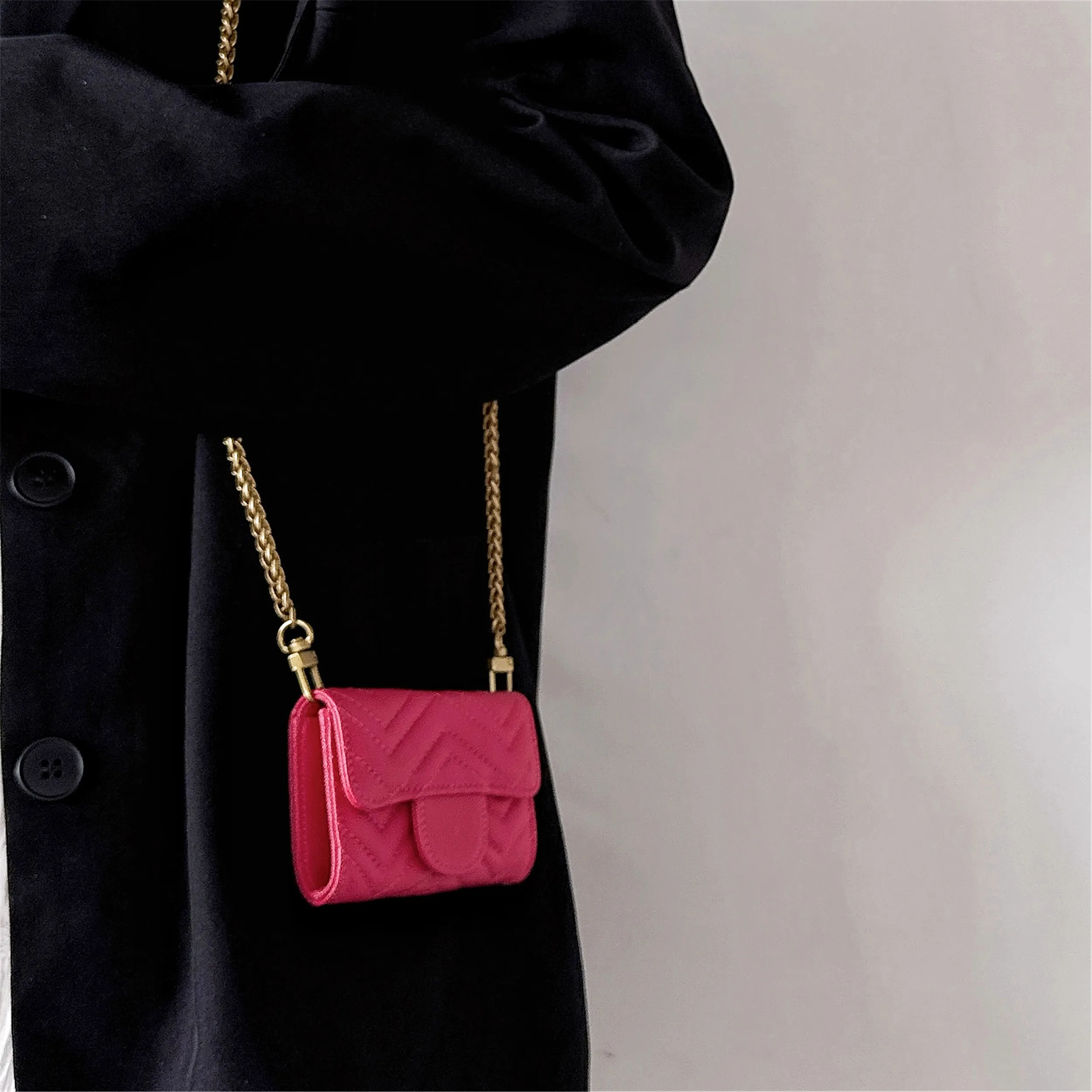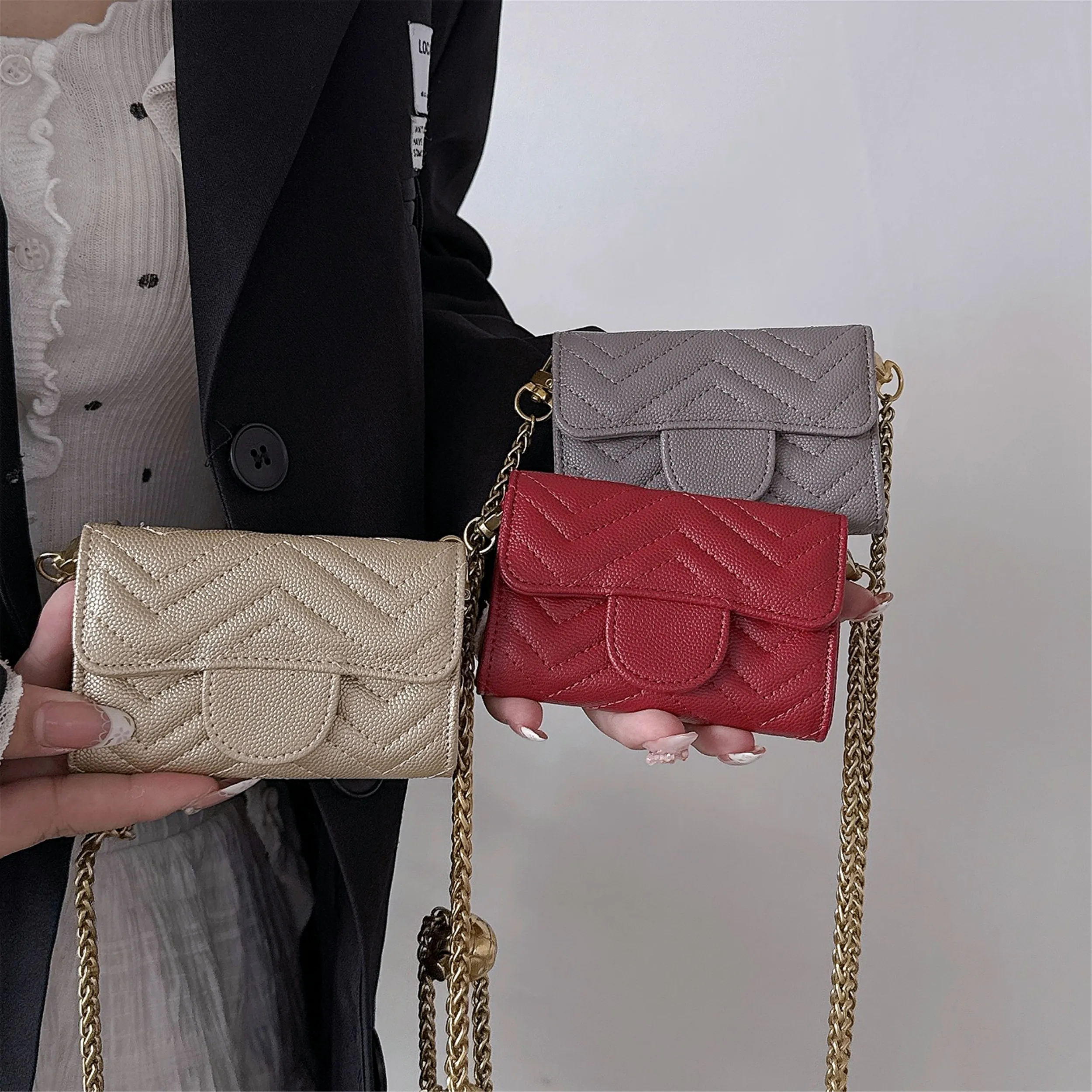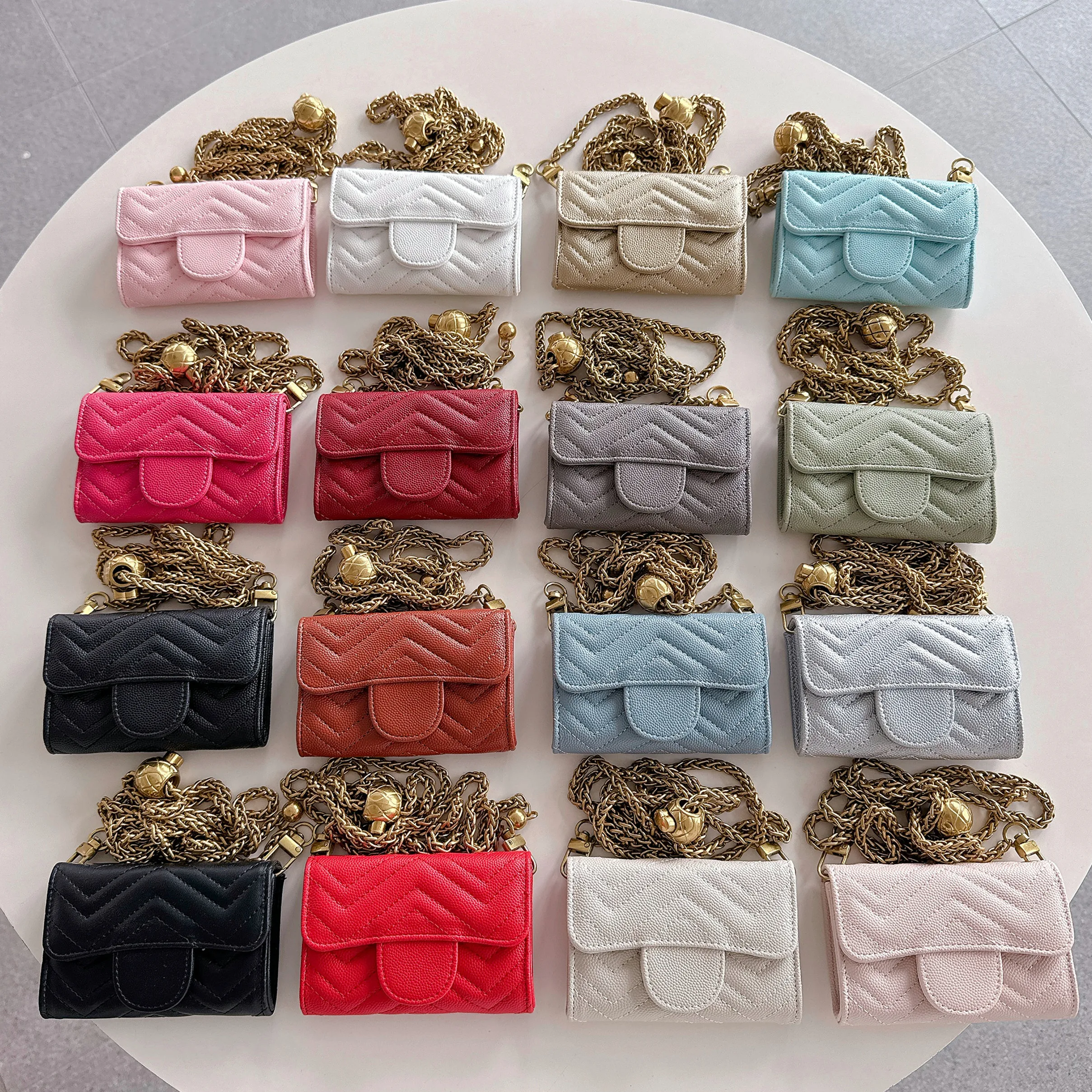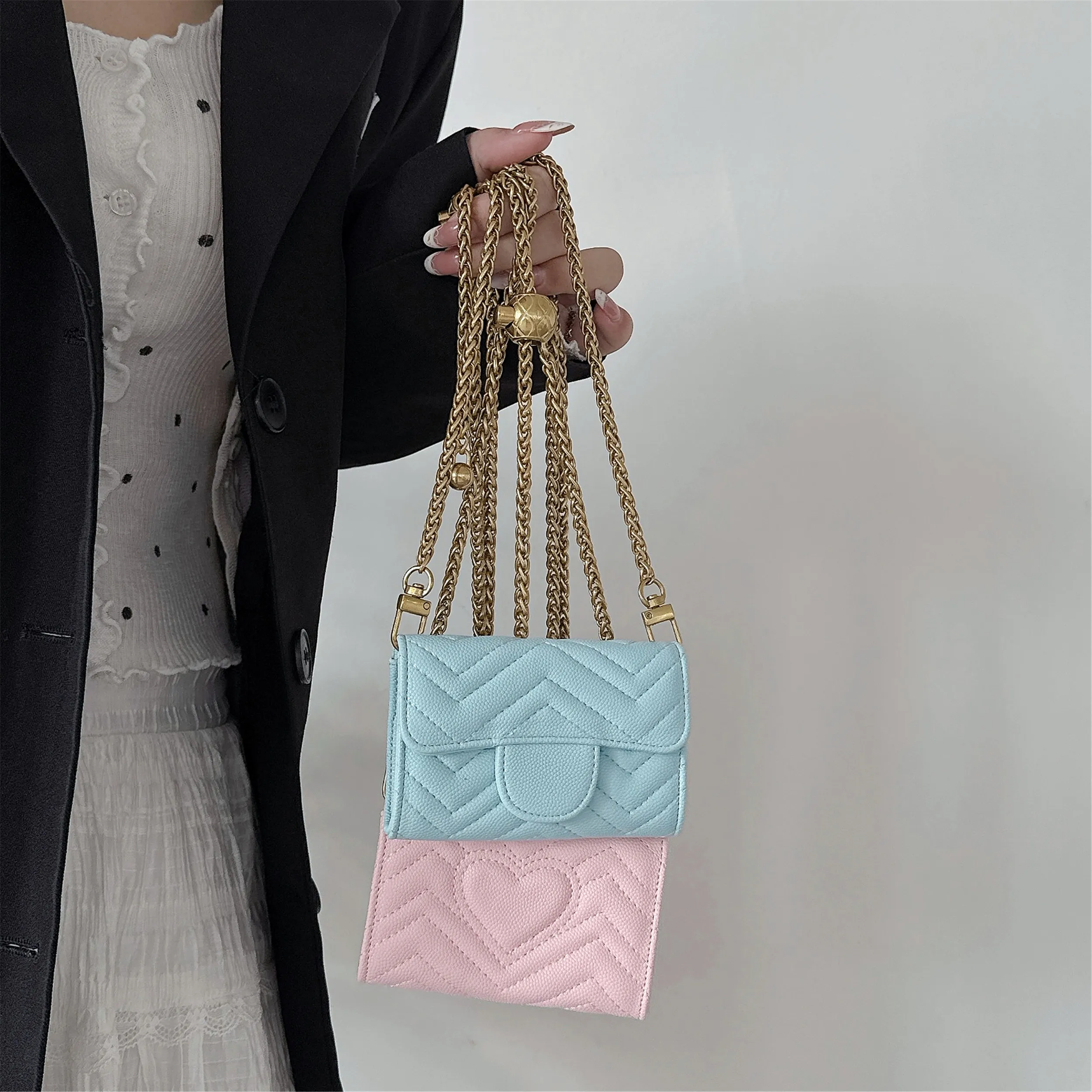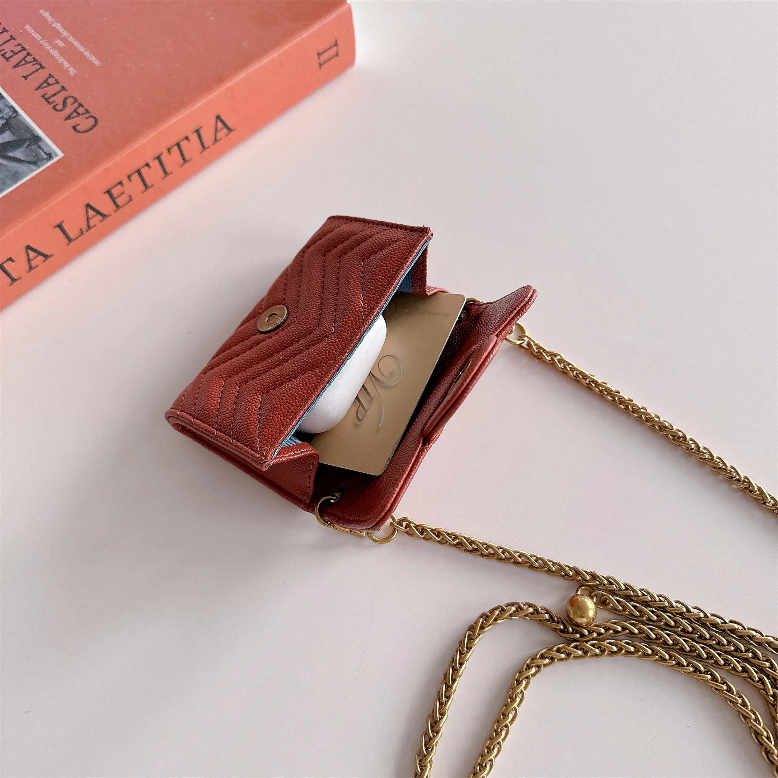 미니 쉐브론 & 하트 기능성 지갑 카드 홀더 크로스 바디 동전 지갑 Airpods 케이스 용 다기능 키 백 립스틱 클러치